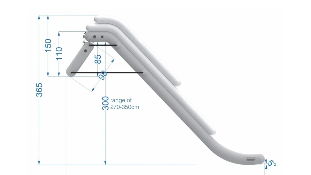 The DOCKEE Inflatable Yacht Slide turns your yacht into an exciting, elegant open-sea attraction. With a total height of 365 cm (12’0”) and a slide length of 484 cm (15’10”), it delivers fun, safety, and luxury enhancing every moment on the water, whether you’re anchored with family or entertaining charter guests.