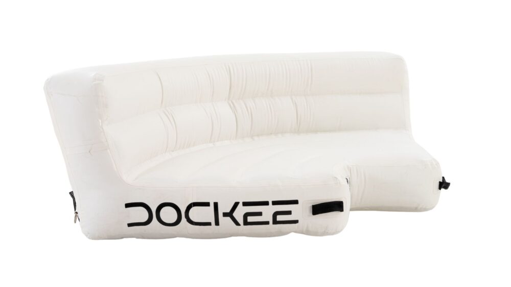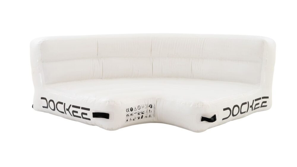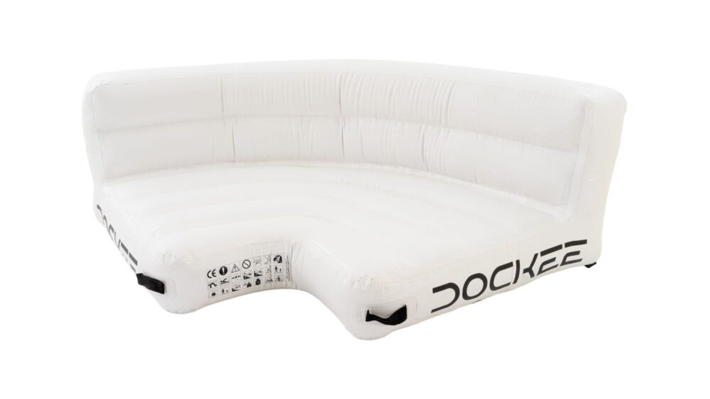The DOCKEE Relax Corner is a compact yet luxurious inflatable seating module designed to enhance any floating platform layout. With its curved, ergonomic form and dimensions of 160 x 65 cm (5’3” x 2’1”), it creates a cozy space for sunbathing, socializing, or simply enjoying quiet moments on the water—blending comfort, function, and elegance.